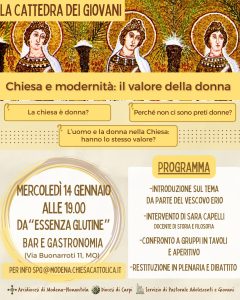 Cattedra dei Giovani, Eventi SPG La Cattedra dei Giovani – Chiesa e modernità: il valore della donna Scarica il volantino dell'iniziativa